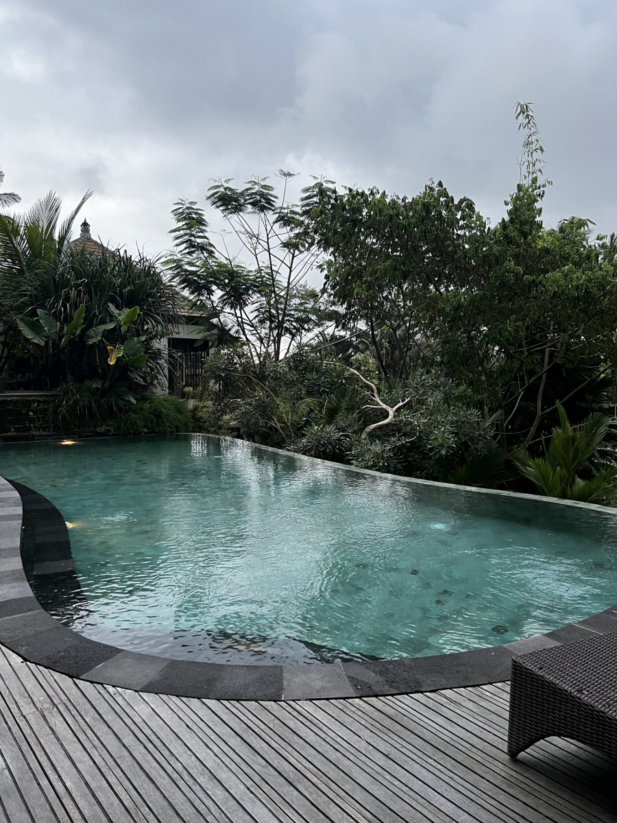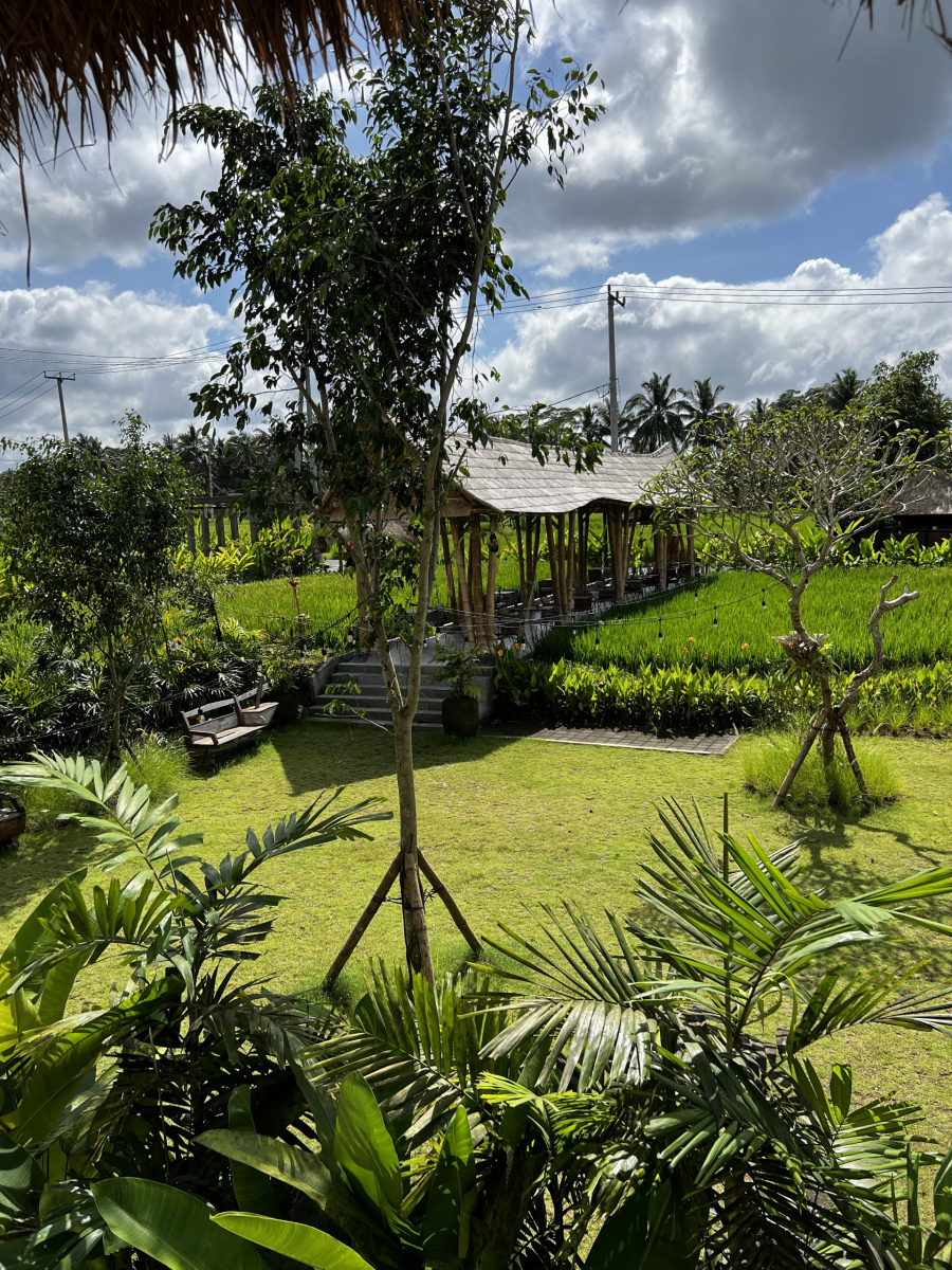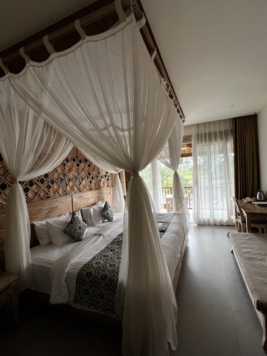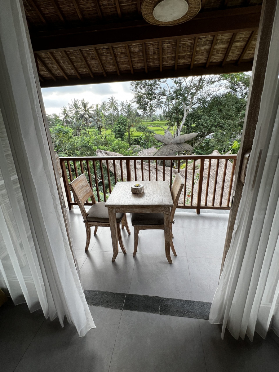 - Ein paar Worte zum Hotel: Ich bin froh, dass wir nicht storniert haben! Unfassbar malerische, wunderschöne Hotelanlage. Wir wurden super herzlich empfangen mit Welcome Drink und Reiszeremonie. Der Pool: mega! Das Zimmer: mega! In die Jahre gekommen: Höchstens die ein oder andere Fuge im Bad. Ansonsten alles top in Schuss und sehr schick eingerichtet. Schimmelgeruch habe ich auch nicht wahrgenommen, eher riecht es nach Moskitospray. Das braucht man hier in den feuchten Reisfeldern aber auch.