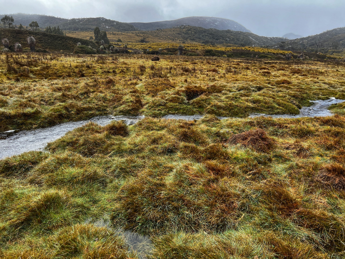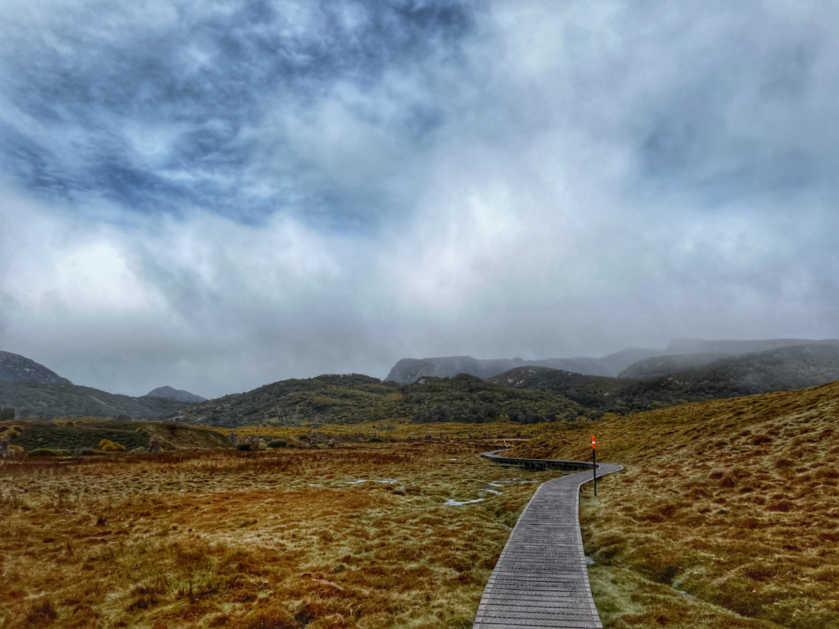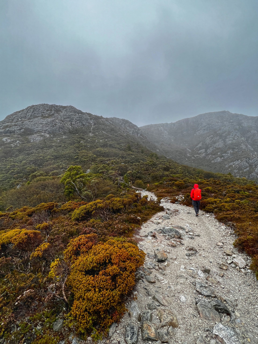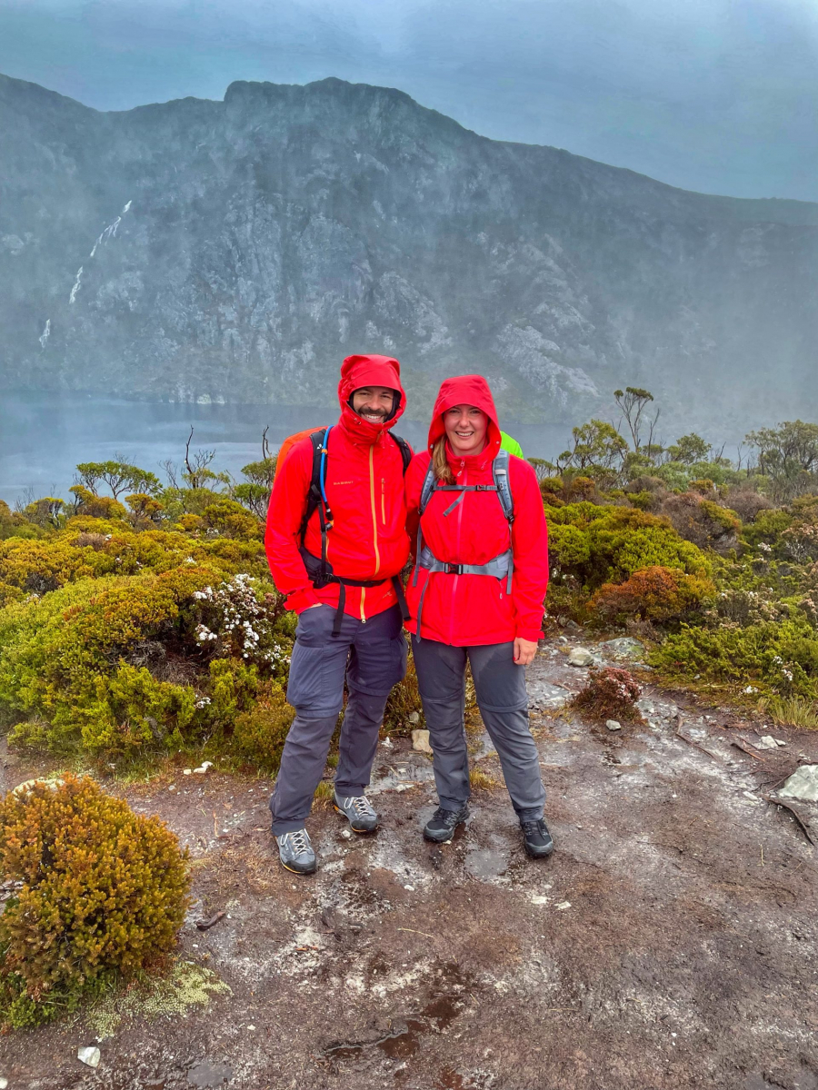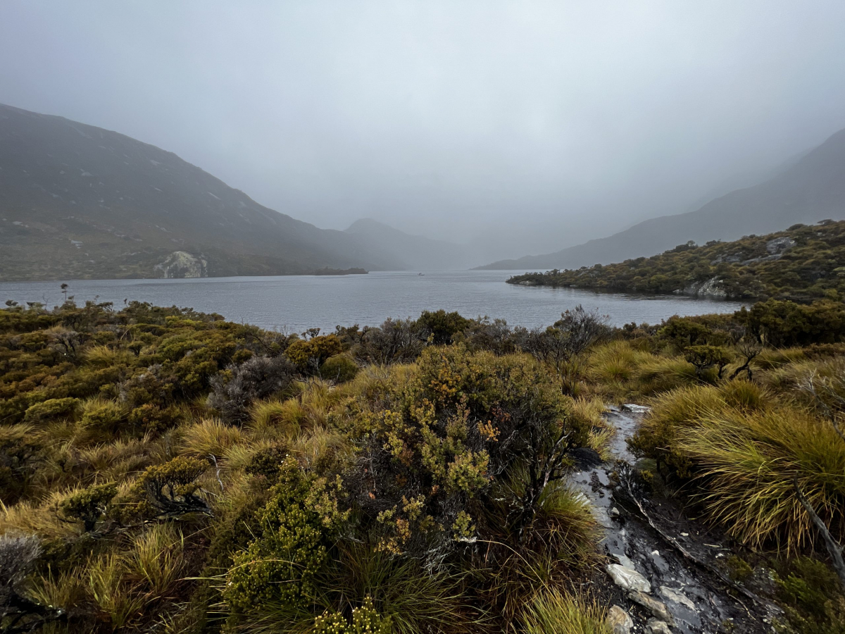 Nachdem ein Photopoint den nächsten jagte, entschieden wir uns noch als Tageshighlight den „Marion’s Lookout“ mitzunehmen. 30 Minuten hoch und wieder zurück – extra – einfach so, für die Geschichtsbücher. Belohnt wurden unsere Mühen mit weiteren Shades-of-Gray und durchweg nassen Hosen. Der Abstieg über Wombat’s Pool zum Dove Lake war dann die vollkommende Vollendung unserer Erfahrung. 8 Kilometer, 3 Stunden, 420 Höhenmeter. Dann Shuttlebus, 2x Chai Latte, Umziehen – und 40 Minuten weiter in unsere nächste Unterkunft, das „Tiny House“. Das Tiny House war eine ausgebaute Anhängerkonstruktion mit Bett im Maisonettestockwerk – freistehend, Landschaftsblick, WLAN und Warmwasser. Es war ein gemütlicher Ausklang eines regenreichen Tages.