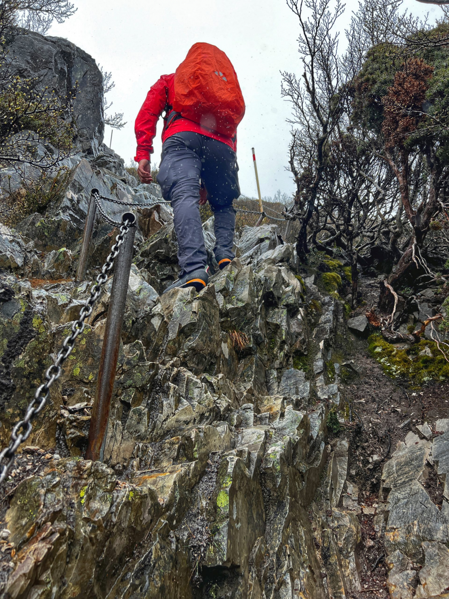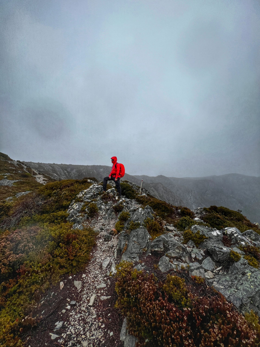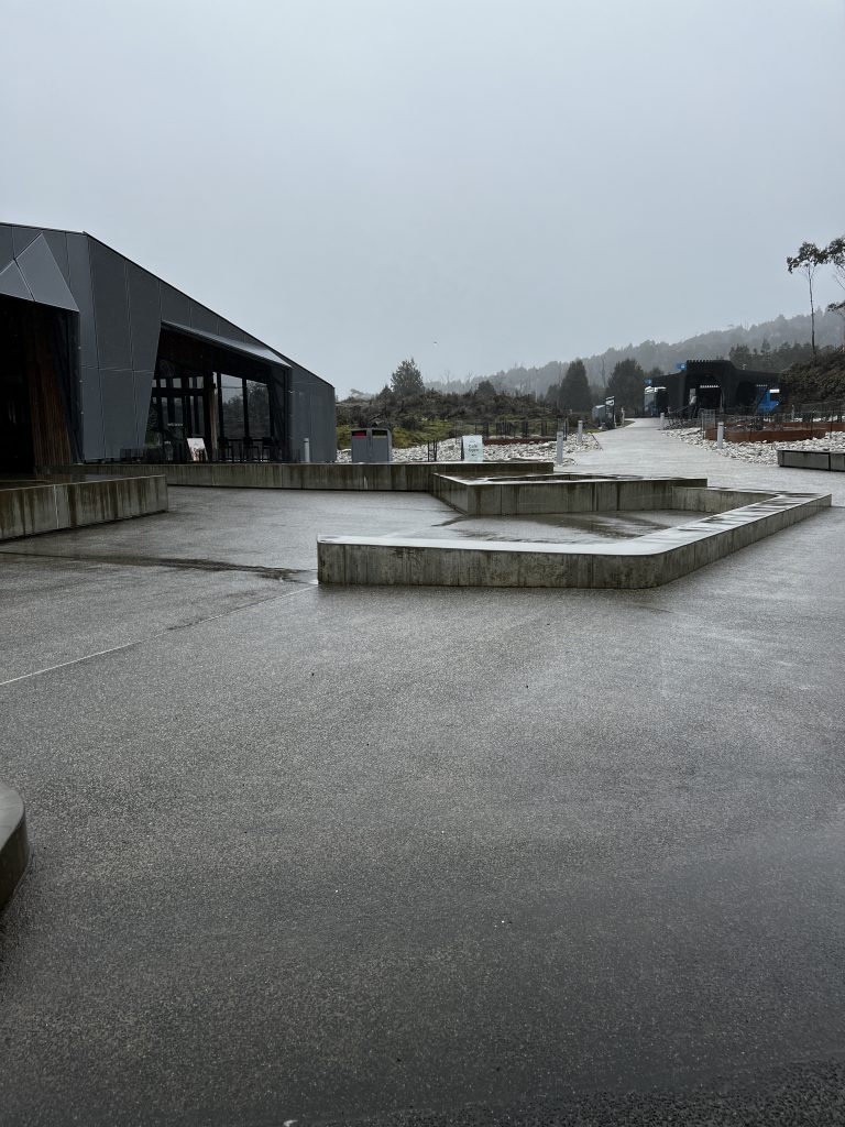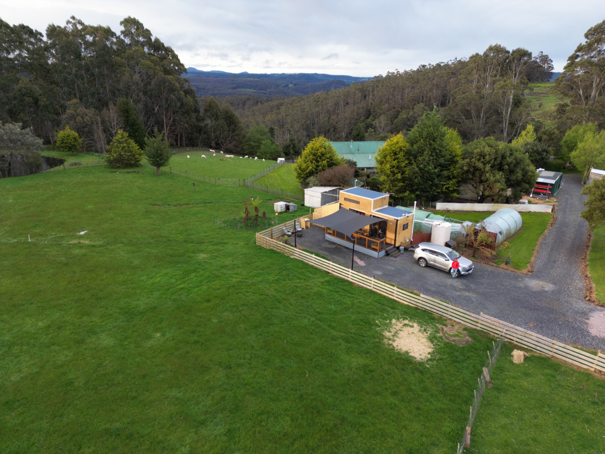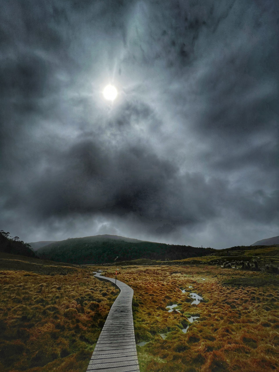 Nachdem ein Photopoint den nächsten jagte, entschieden wir uns noch als Tageshighlight den „Marion’s Lookout“ mitzunehmen. 30 Minuten hoch und wieder zurück – extra – einfach so, für die Geschichtsbücher. Belohnt wurden unsere Mühen mit weiteren Shades-of-Gray und durchweg nassen Hosen. Der Abstieg über Wombat’s Pool zum Dove Lake war dann die vollkommende Vollendung unserer Erfahrung. 8 Kilometer, 3 Stunden, 420 Höhenmeter. Dann Shuttlebus, 2x Chai Latte, Umziehen – und 40 Minuten weiter in unsere nächste Unterkunft, das „Tiny House“. Das Tiny House war eine ausgebaute Anhängerkonstruktion mit Bett im Maisonettestockwerk – freistehend, Landschaftsblick, WLAN und Warmwasser. Es war ein gemütlicher Ausklang eines regenreichen Tages.