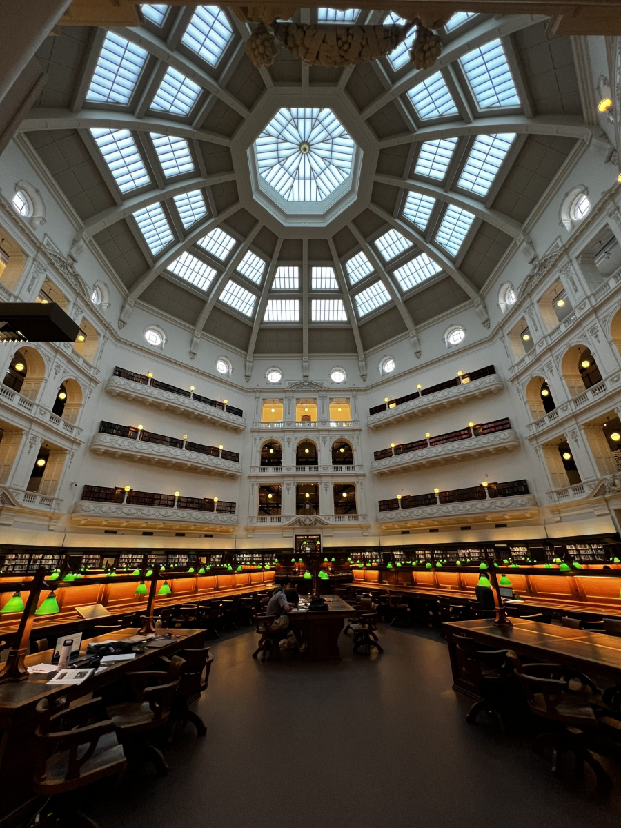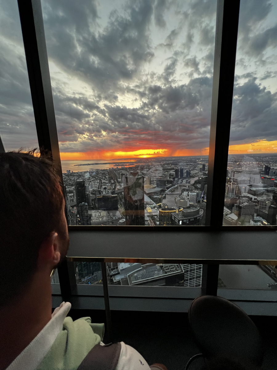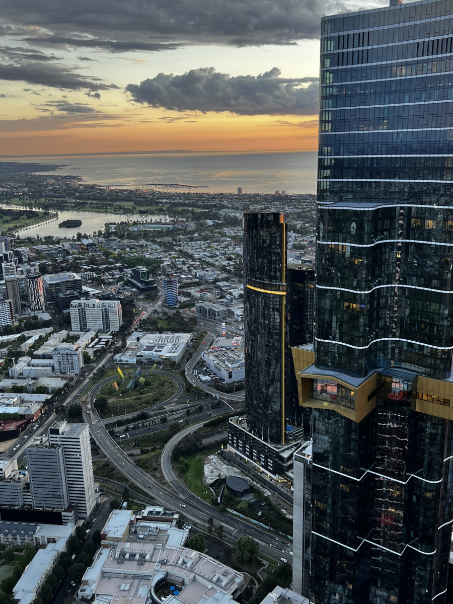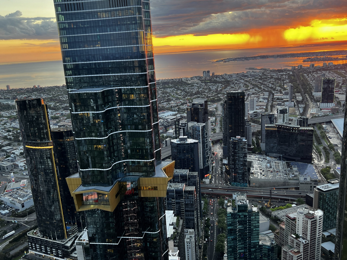 Nach der Tour schlenderten wir durch die Gegend und erkundeten auf eigene Faust. Sehr zu empfehlen ist die Victoria State Library, mitten im Zentrum: Bücherei, Kunstmuseum und Veranstaltungsort in Einem. Nach einer kurzen Pause im Hotel stand noch ein weiteres Highlight auf dem Plan: Das Observation Deck. Wir hatten es extra so getimt, dass wir den Sonnenuntergang mitbekommen. Leider konnten wir aber den Blutmond aufgrund von Wolken (noch) nicht sehen. Erst später am Abend – auf dem Weg zurück ins Hotel – hat er sich schwach am Himmel gezeigt. Es gibt ein Foto in der Galerie, man sieht ihn aber wirklich nur sehr schwach.