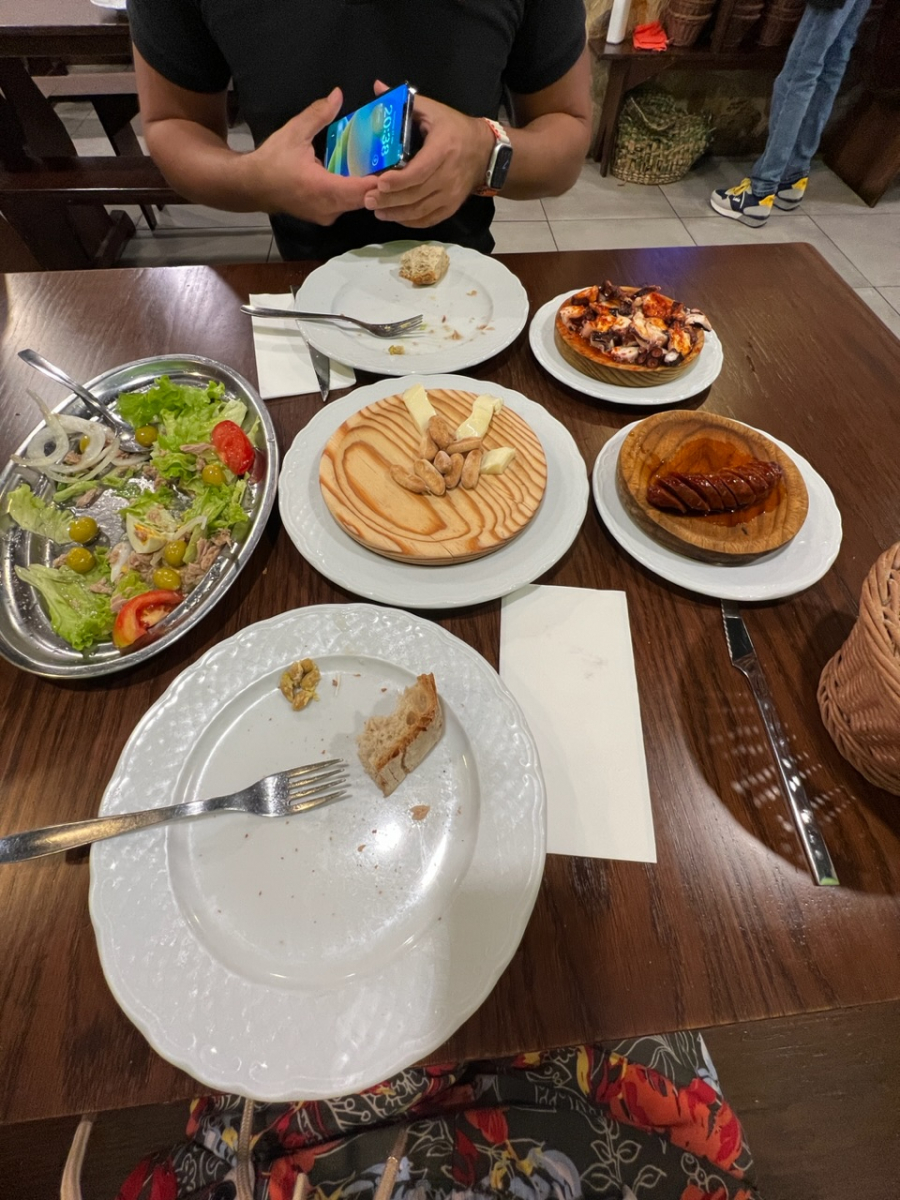 Zurück im Hotel schauten wir natürlich den Bundesligakrimi zwischen dem BVB und dem FC Bayern. Ich hätte es dem BVB definitiv gegönnt. Am frühen Abend fuhren wir in die Stadt und bummelten durch die Altstadt. Wirklich nettes Städtchen, mit eigenem Stadtstrand und belebten Gassen. Markus wollte unbedingt Pulpo a la Gallega essen. Das machten wir dann in einer Taberna. Dort gab es verschiedene Tapas, also war ich auch happy.