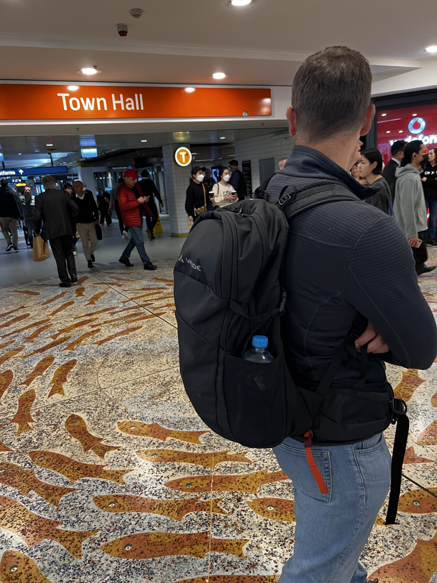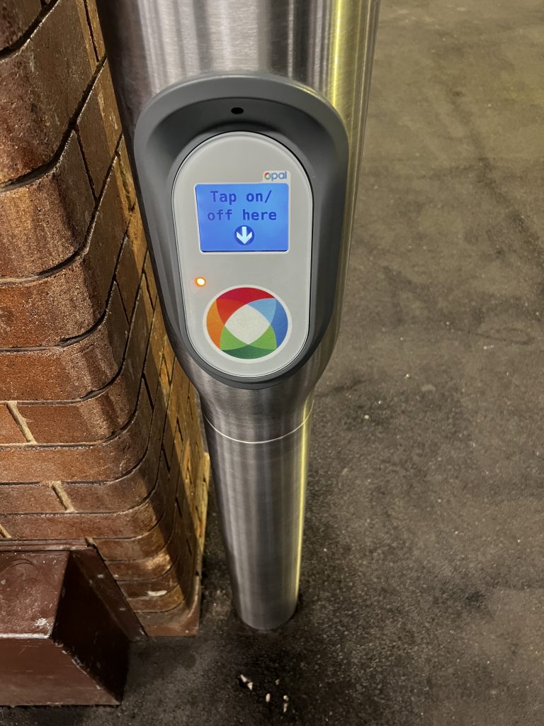 • Mit dem Zug von Miranda nach Town Hall. Dauer etwa 50 Minuten. Man kann einfach „Tap on and off“ mit der Kreditkarte machen (gab es in Singapur auch). Dafür gibt es Säulen an jeder Haltestelle. Super praktisch und keine Mehrkosten, im Vergleich zu anderen Tickets oder Abos. Es kostet in der Regel nur ein paar australische Dollar pro Tag ( 1 Euro sind ca. 1,60 AUD). Super, wie günstig öffentlicher Nahverkehr ist.