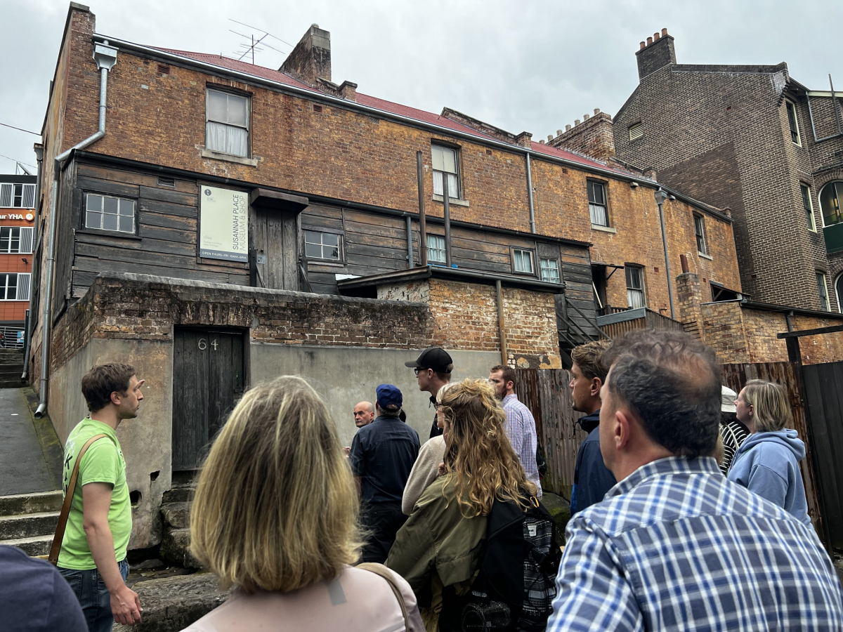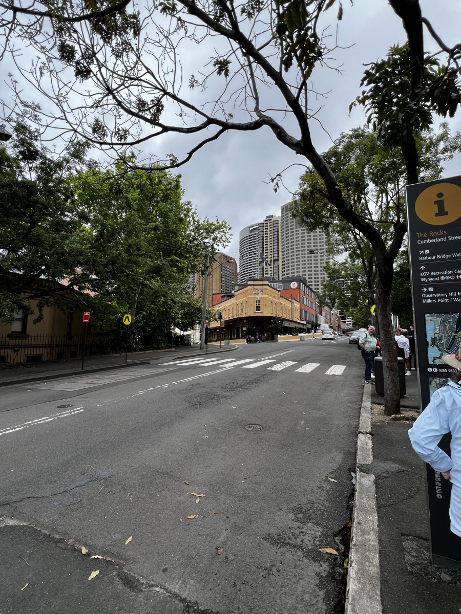 • Abends machten wir dann die „The Rocks“ Tour, sie dauerte circa 1,5 Stunden. Der Guide war nicht so gut wie Scott, aber es war dennoch sehr interessant. The Rocks ist ein Viertel mit historischen Gassen und sogenannten Terrassenhäusern unter/neben der Sydney Harbour Bridge. Ursprünglich wohnten dort Sträflinge. In der Gegend befinden sich heute einige der ältesten Pubs von Sydney und alles ist entweder bereits saniert, oder wird gerade modernisiert.