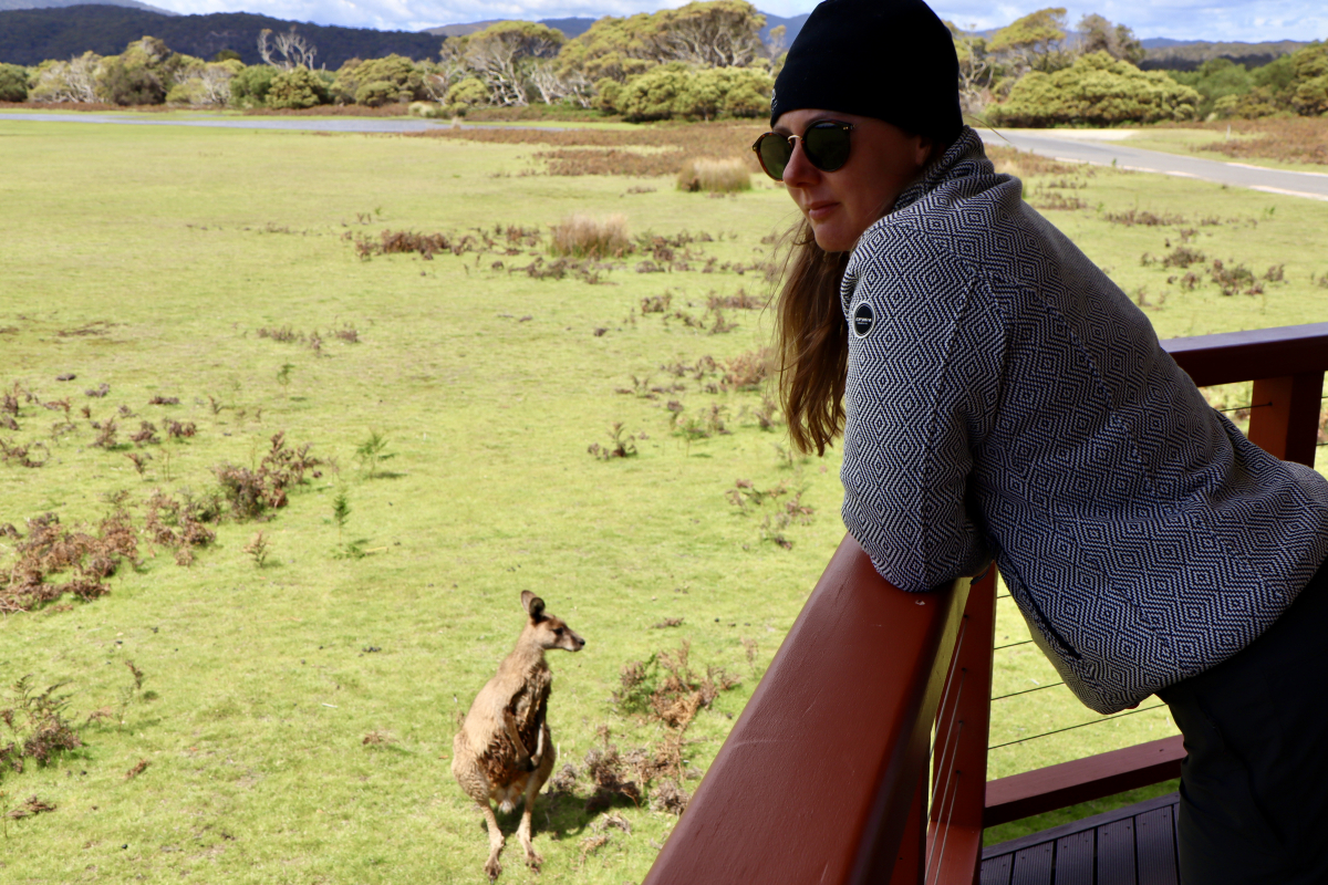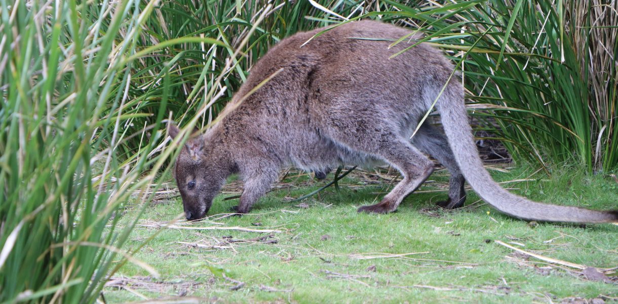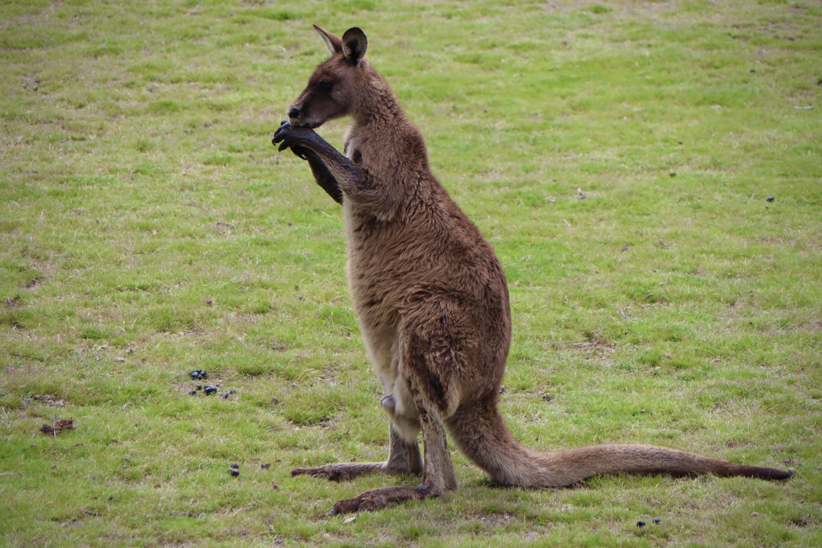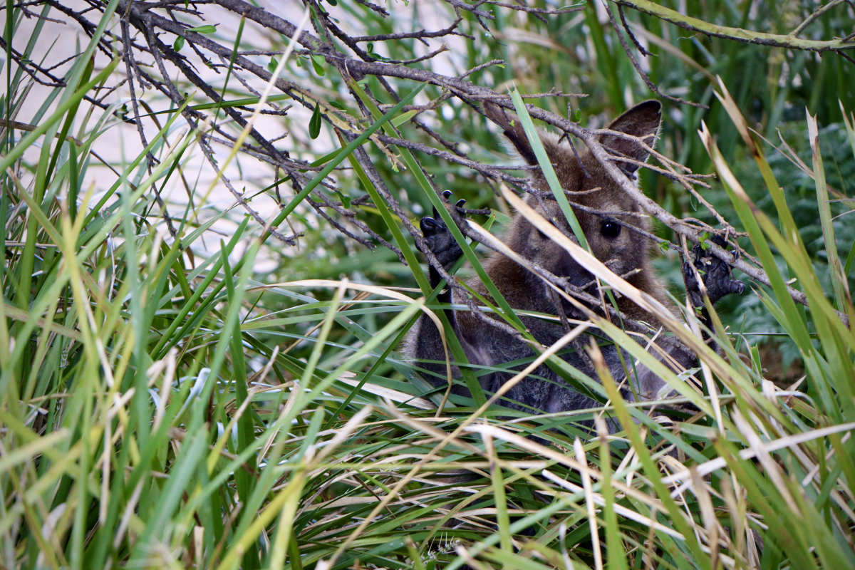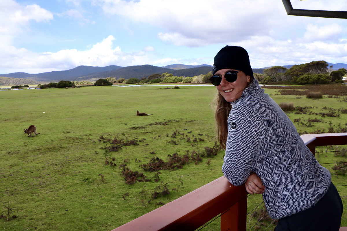 Nächster Stopp war der Narawntapu Nationalpark, direkt am Meer. Diesen können wir jedem uneingeschränkt empfehlen. Allein schon die Anfahrt bei herrlichem Sonnenschein, durch wunderschöne und vielfältige Landschaften, machten uns gute Laune. Im Nationalpark selber wurden wir mit einem unfassbar schönen, weitem Sandstrand konfrontiert, der extrem flach abfiel. Die Wellen waren ganz seicht, sodass es mit 10 Grad mehr der perfekte Ort gewesen wäre. Im Park sahen wir auch weitere Wollabys (quasi Mini-Kängurus) und Bandicots (sehen aus wie riesige Ratten). Generell ist es ganz cool in Australien, dass die Nationalparks mit dem eigenen Auto befahren werden dürfen. Wir waren sehr dankbar für unseren großen SUV, der auf den vielen Schotterstraßen eine gute Figur machte. Was wir hier auch das erste Mal sahen, waren wilde Kängurus. Eine Gruppe von ihnen präsentierte sich ordentlich auf einer großen grünen Wiese.