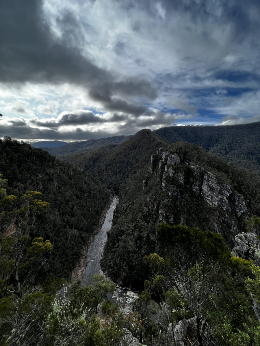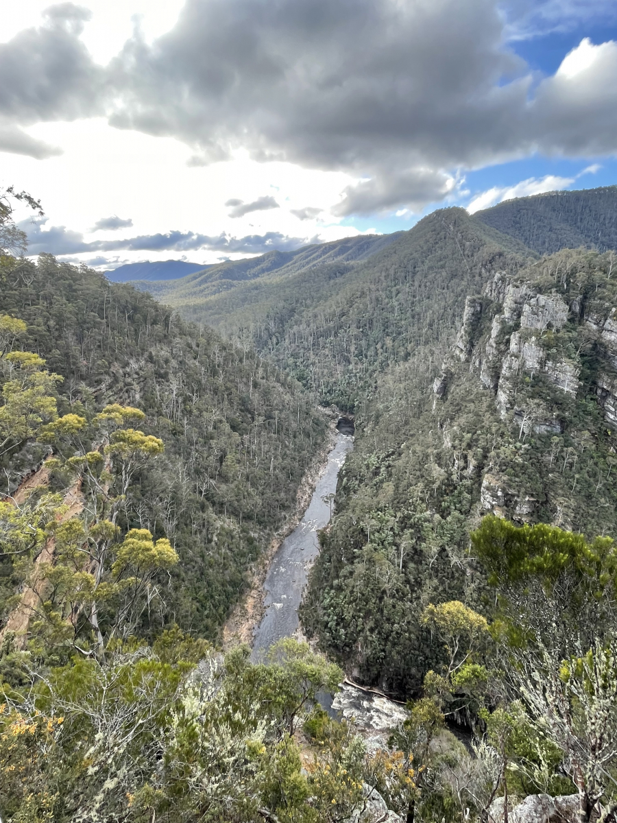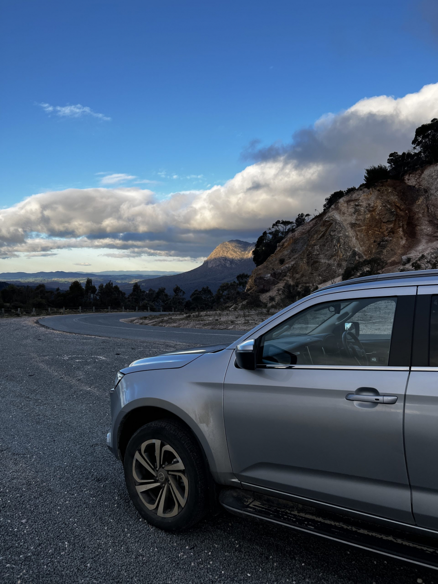 Den schönen Tag abschließen konnten wir mit zwei weiteren landschaftlichen tollen Spots. Einer war der Alum Cliffs Tulampanga Lookout. Hierbei handelt es sich um einen von 60 sogenannten „Great Short Walks“ auf Tasmanien. 30 Minuten hin und zurück mit dem Blick auf eine tiefe Schlucht zur Halbzeit. Der andere war Round Mount Lookout, mit Blick auf die Landschaft, direkt am Straßenrand, kurz vor Sonnenuntergang.