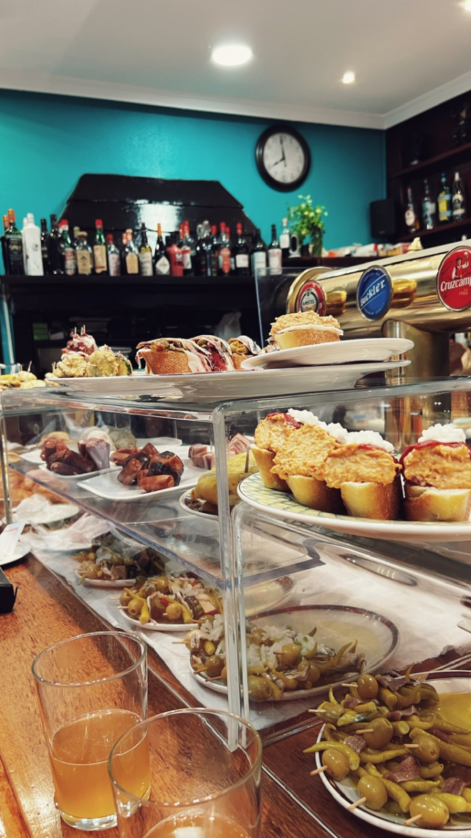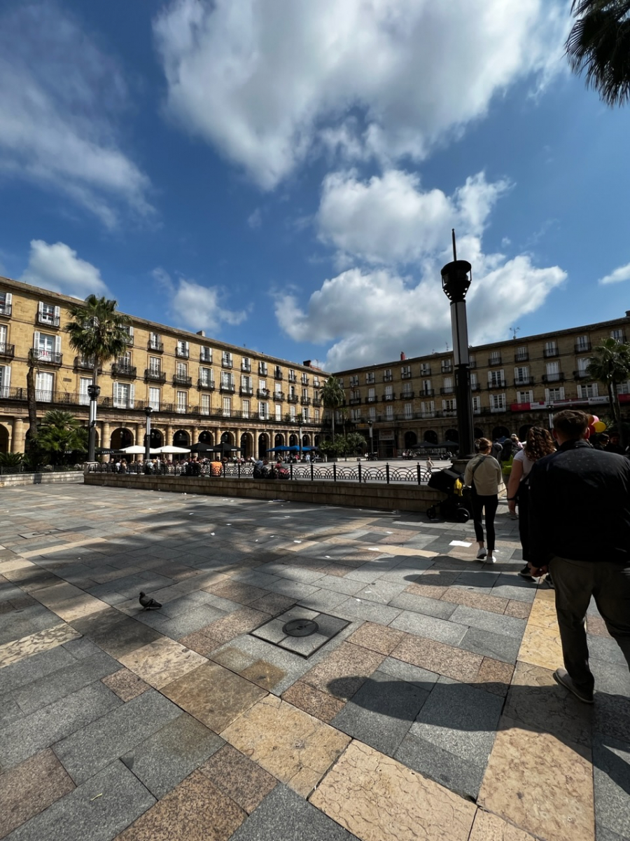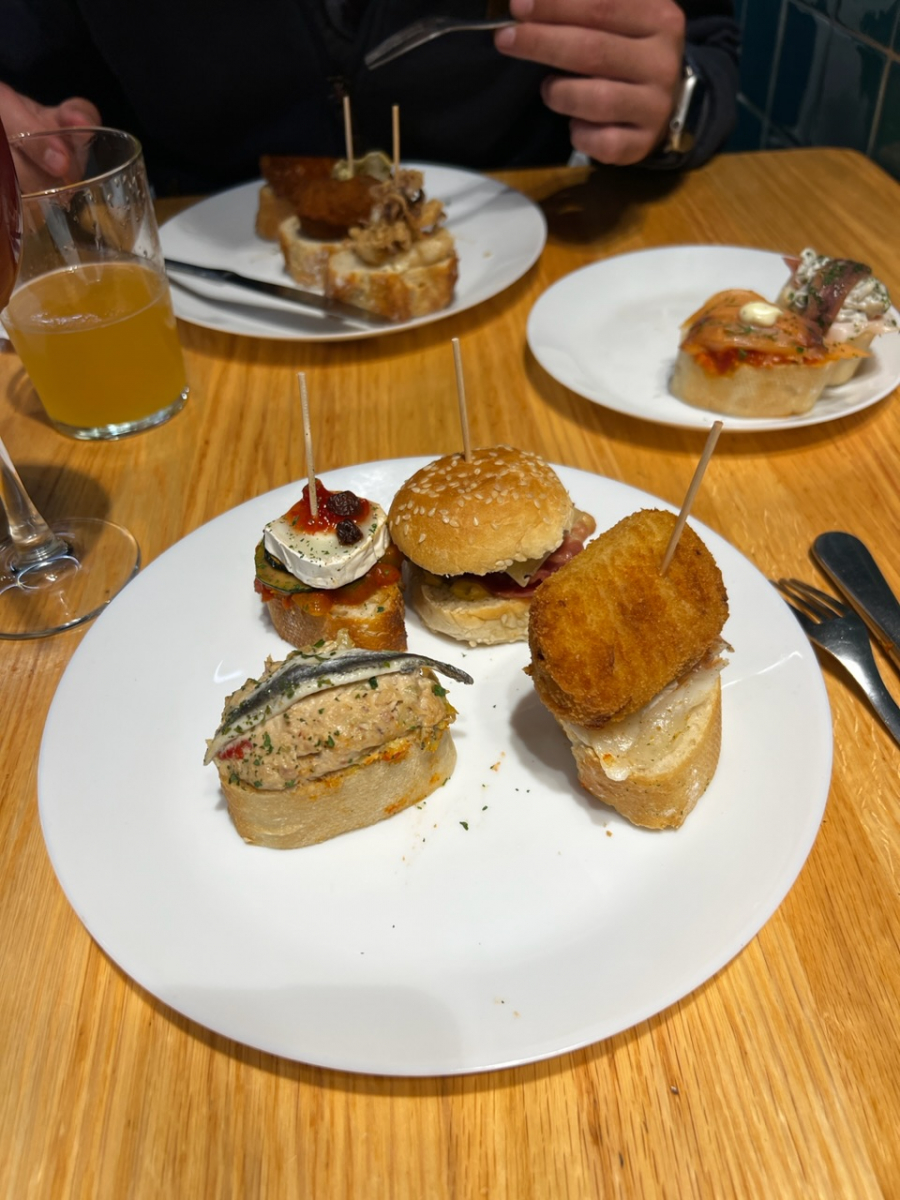 Unsere Freunde „Team B“ gab uns den Tipp, unbedingt Pintxos zu essen. Dabei handelt es sich um das typische Fingerfood in der Region des Baskenlandes und man kommt tatsächlich nicht dran vorbei. Fast jede Bar oder Restaurant bietet sie an. Sie ähneln Tapas, sind aber in der Regel kleiner. Sie werden auf einem Brot serviert und oft mit einem Zahnstocher zusammengehalten. Daher auch der Name „pinchar“, das übersetzt soviel wie „etwas stechen“ bedeutet. Hat uns auf jedenfall sehr gut geschmeckt! In San Sebastián war sehr viel los (klar, Samstagabend). Die Straßen waren voller Menschen und guter Laune. Die Spanier sind ja bekannt dafür, dass das Leben auf der Straße stattfindet. Grundsätzlich war das Wetter deutlich besser, als angekündigt. Nach der zweiten Pintxos-Bar, mit sehr leckeren Fisch-Köstlichkeiten, bewegten wir uns langsam wieder heim. Uns hat die Architektur und das Flair von San Sebastián sehr gut gefallen. Circa 187.000 Menschen leben dort und es herrschte geschäftiges Treiben in den Gassen.