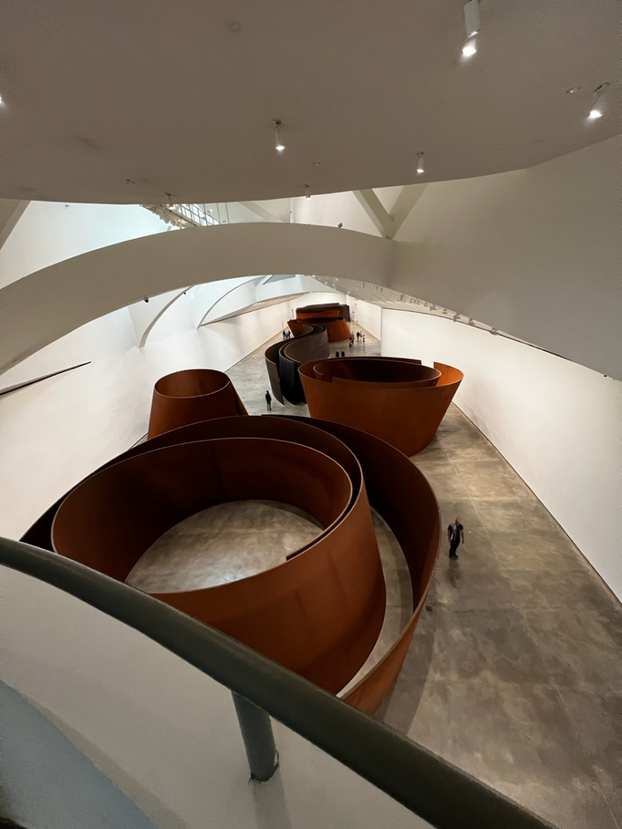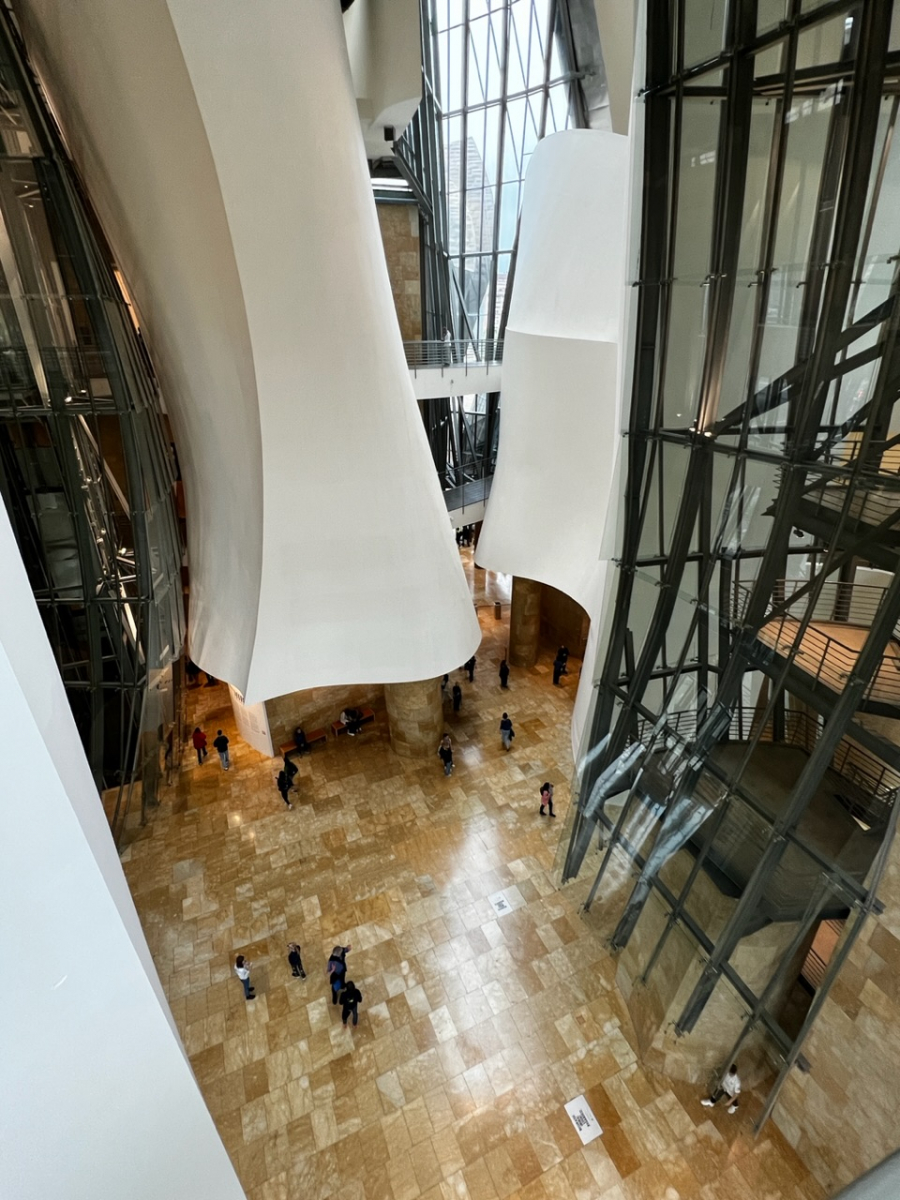 Bilbao hingegen: WOW. Hat mir nach Bordeaux mit am Besten gefallen. Die gesamte Innenstadt ist einfach wunderschön restauriert. Die Architektur beeindruckend, viele kleine Parks und ein Fluss, an dem es sich fantastisch flanieren lässt. Unser Hotel war mitten in der Stadt, mit einer schnuckeligen Rooftop-Bar, inklusive toller Aussicht über die Stadt. Wir haben extra eine Nacht bis Mittwoch verlängert und uns das Guggenheim Museum angesehen, das Montags geschlossen hat. Die obligatorische Free Walking Tour am Sonntag durfte natürlich nicht fehlen. So erfuhren wir beispielsweise, dass ab dem Wochenende nach dem 15. August neun Tage Festivitäten stattfinden und Ausnahmezustand in der Stadt herrscht. Am Stück. Oha! Und die Stadt wurde leider in den 80ern von einer veherrenden Flut heimgesucht. Seitdem ist zum Glück kein solches Unglück mehr passiert. Circa 346.000 Menschen leben in der Stadt.