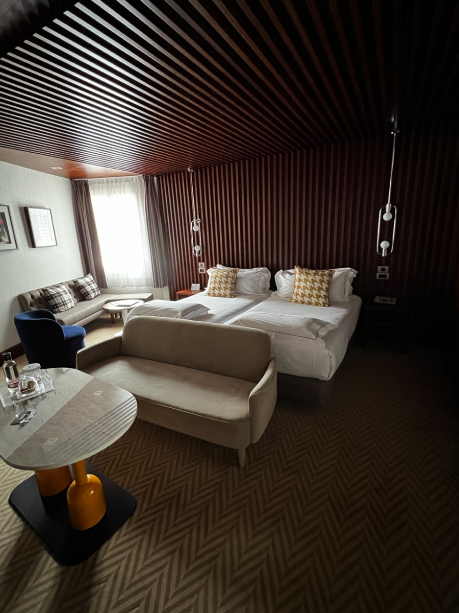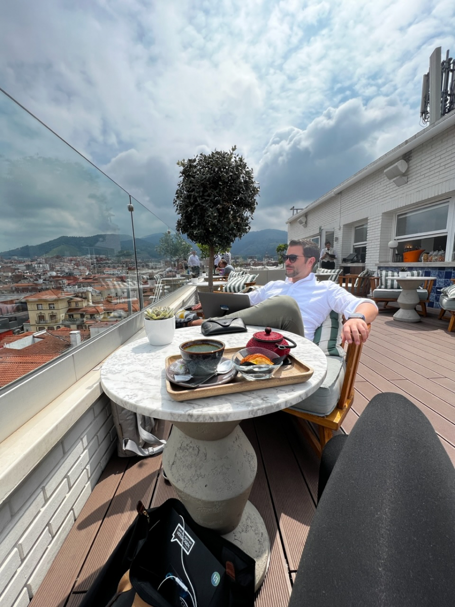 In Bilbao haben wir dann die ersten drei Tage gearbeitet. Das war nicht ganz optimal, denn einer war im Zimmer und einer in der Lobby (die hier und da etwas laut war). Und leider war das W-LAN im Zimmer nicht so super. Für Meetings musste man sich einen Hotspot machen. Wir halten fest: Fürs Arbeiten dann doch lieber ein AirBnB beziehungsweise Ferienwohnung mieten. Mit gutem Internet. Sonst ist es etwas mühsam. Dank Markus Platin-Marriott Status hatten wir Late-Checkout um 16 Uhr. „Bettenwechsel“ muss man beim Arbeiten im Ausland eben auch bei der Meeting-Planung berücksichtigen.