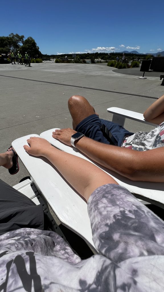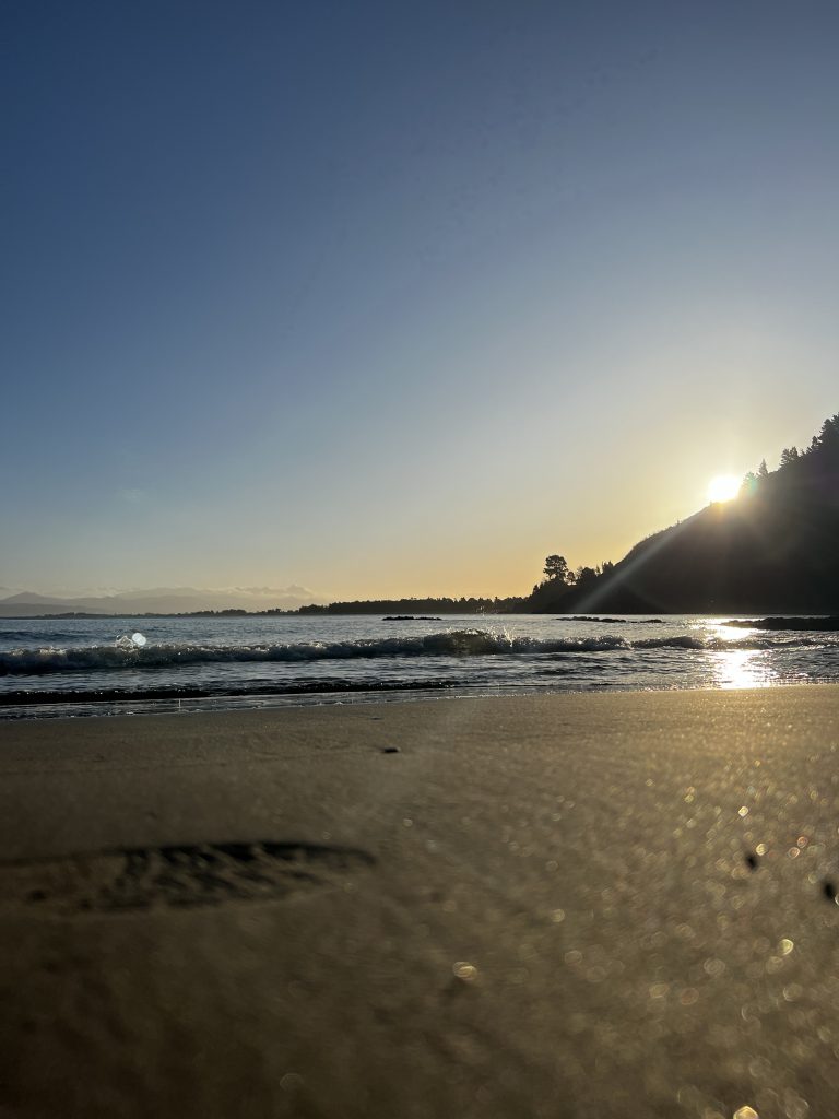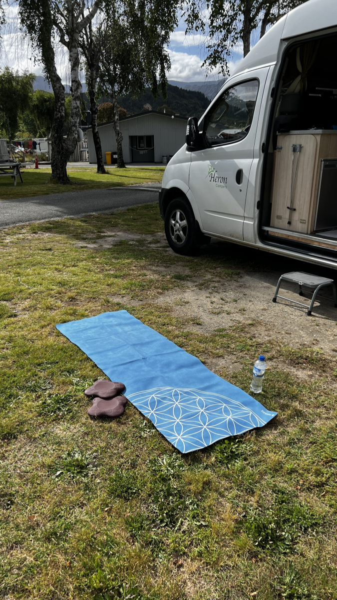 Zurück in Marahau wurden wir natürlich wieder standesgemäß mit dem Traktor aus dem Wasser gezogen. Echt ein cooles Spektakel. Abends machte ich wieder ausgiebig Yoga und wir konnten zum ersten Mal draussen Abendessen, bei sehr milden Temperaturen.