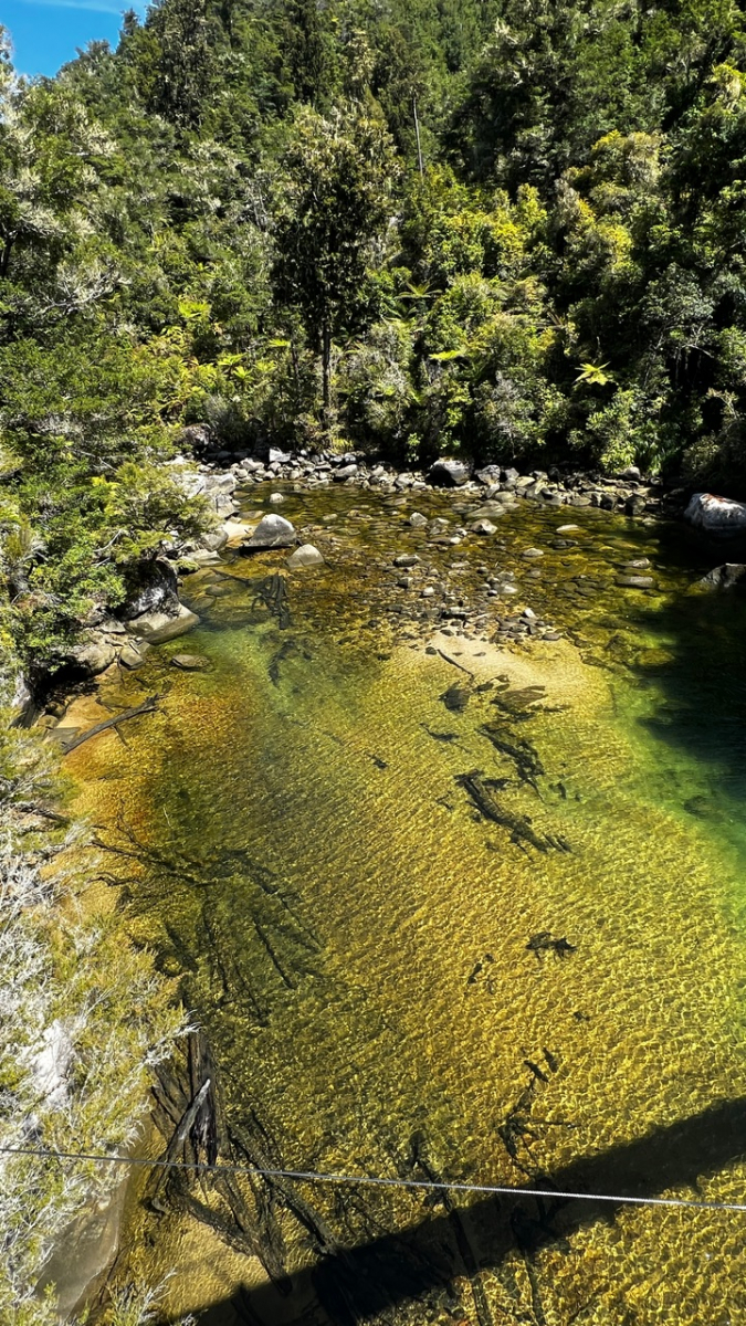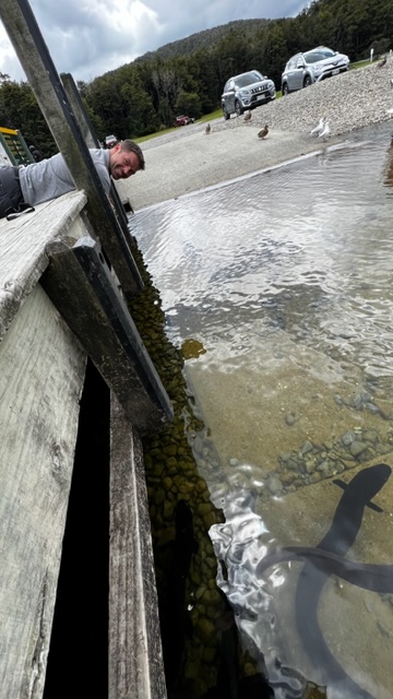 Am nächsten Morgen starteten wir unsere Wanderung auf den Mount Robert im Nebel. Diesmal „nur“ 500 Höhenmeter. Nach und nach klarte der Himmel auf und wir konnten von oben den See bewundern. Die Wanderung ist wirklich schön und abwechslungsreich. Aber kein Muss. Hat sich bei uns einfach gut ergeben. Anschließend frühstückten wir am See und konnten unter dem Steg eine Menge Aale bewundern. In der Form auch noch nie gesehen.