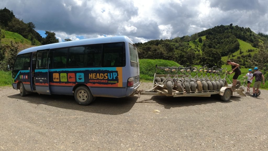 Gemächlich bewegten wir uns weiter nach Norden. Markus hatte den Wunsch, mit einem Cross Scooter den Berg runter zu fahren (hatte er irgendwo mal gesehen). Also ab zu Heads-up Adventures bei Whangarei. Der Guide am Check-In meinte, es wäre etwas rutschig und jemand hätte sich bereits lang gemacht. Inklusive Abtransport ins Krankenhaus. Okaaaaay bye. Ich bin raus. Ich war eh nicht so erpicht auf das Erlebnis. Aber Markus hat es gewagt und hatte Spaß. Das ist doch die Hauptsache.