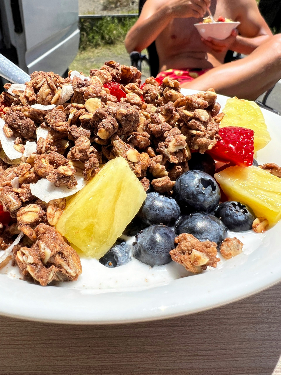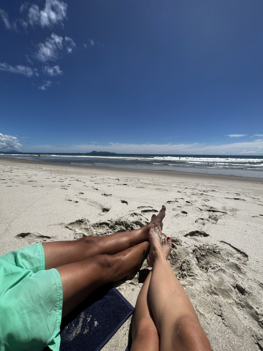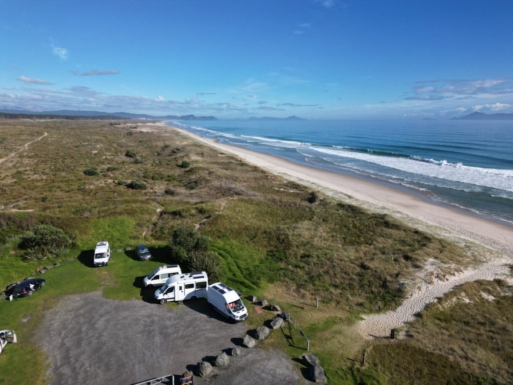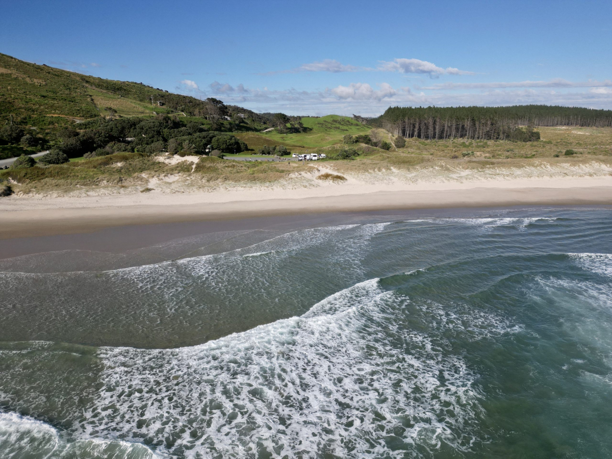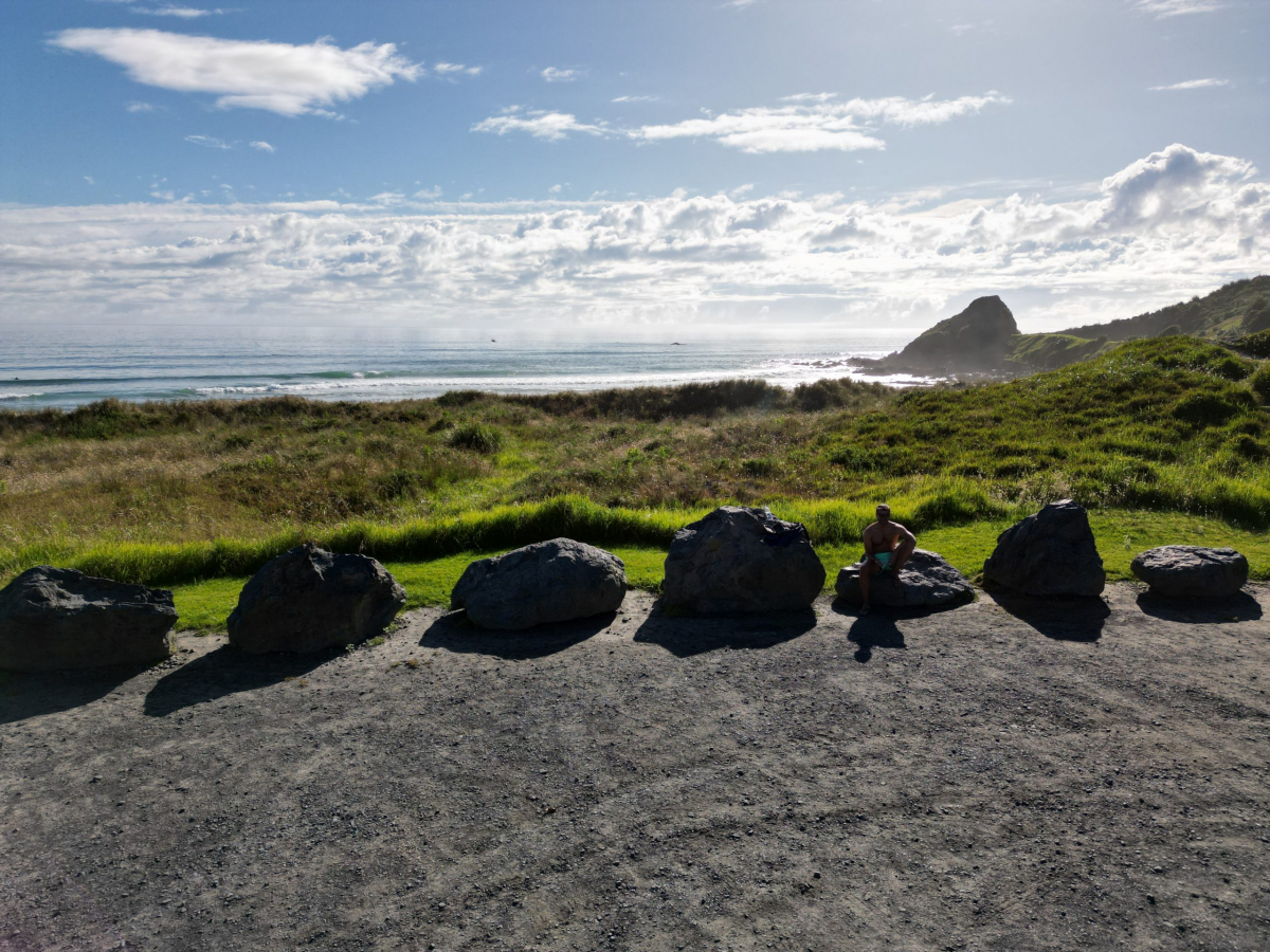 Übernachtet haben wir am Te Arai Point, ein DOC Campingplatz östlich, direkt am Strand. Einer der schönsten Plätze, die wir hatten. Zwar nicht mit direktem Meerblick, aber dafür war der Strand atemberaubend! Ich konnte Yoga machen und wir genossen die Sonne am Morgen.